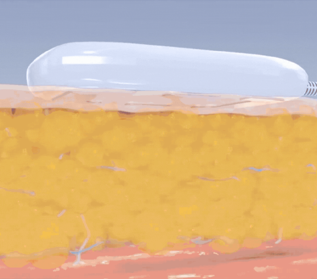 Penetrates fat cells with gentle precision — shrinking them down without pain or heat. Think of it as “melting” fat and cellulites at a cellular level
