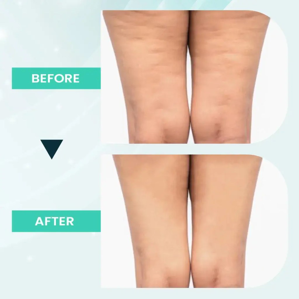 RF energy is used to deliver controlled heat to targeted cellulite deep inside the dermal layers. This ‘deep heat’ effect raises the temperature of targeted fat cells to around 42 – 45 C, which intensifies the breakdown of fat tissues and accelerates body metabolism.